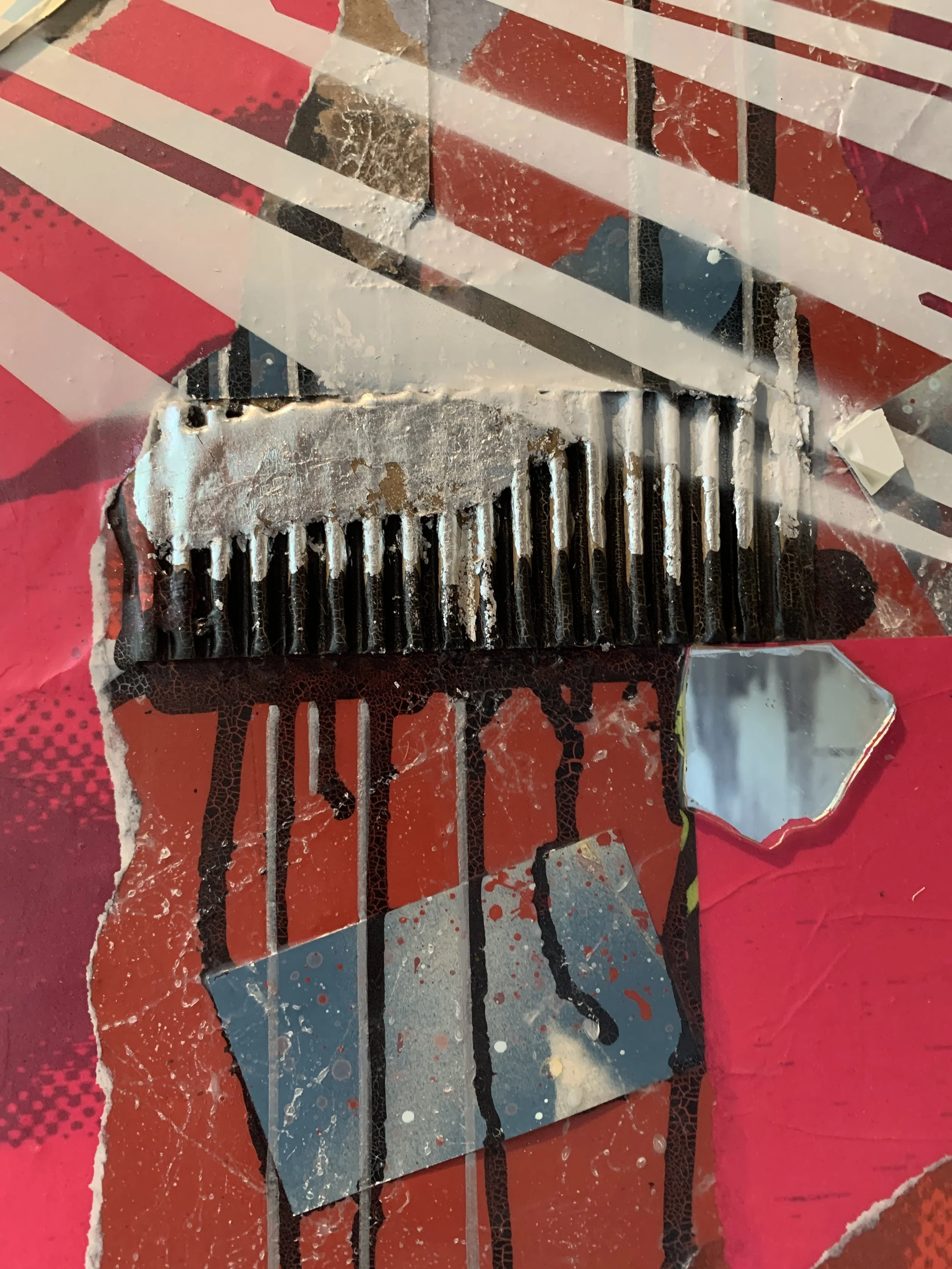 Instead of concealing the entire collage as I’ve done in my recent work, it felt more authentic to me to leave such raw exposure front and center. It is electric AND unapologetic.